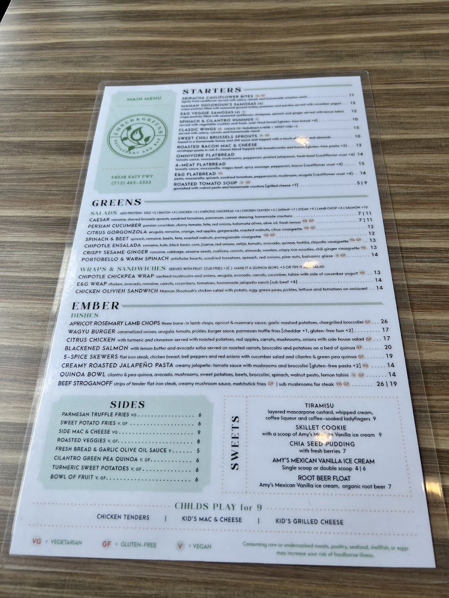 Welcome to Ember & Greens, a delightful culinary gem nestled in the heart of Houston. Known for its inviting atmosphere and friendly staff, this restaurant is a feast for both the eyes and the palate.